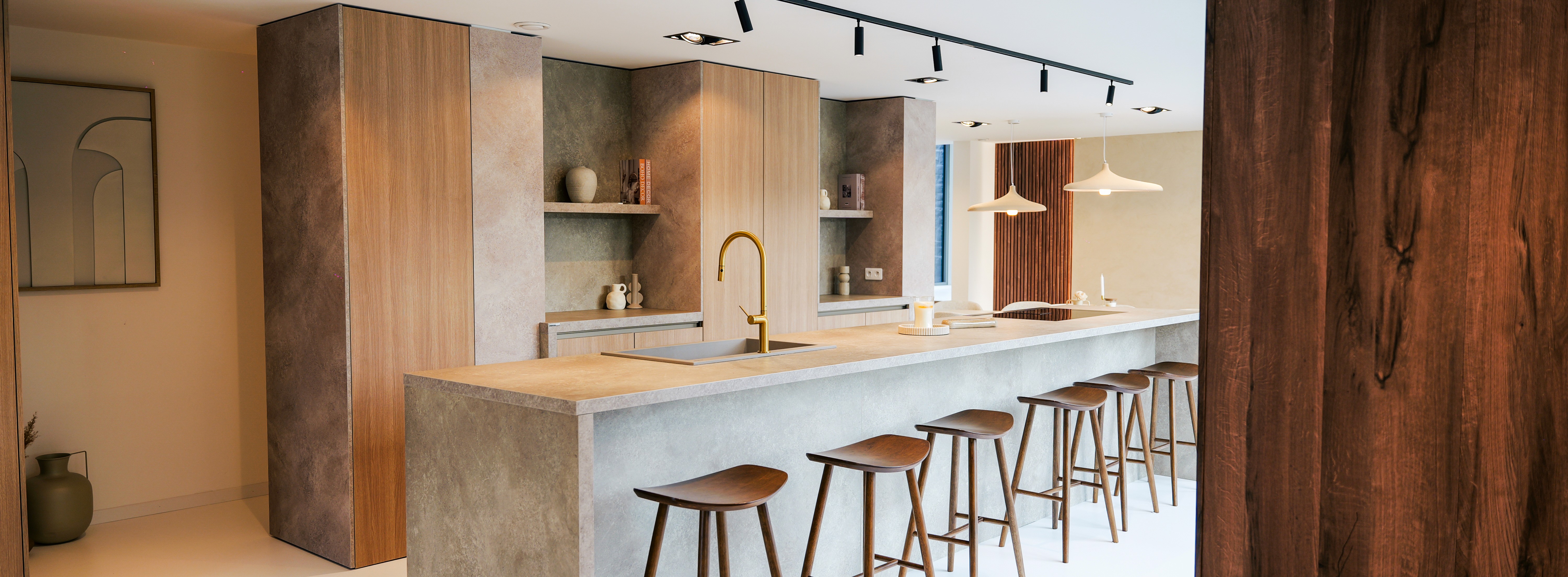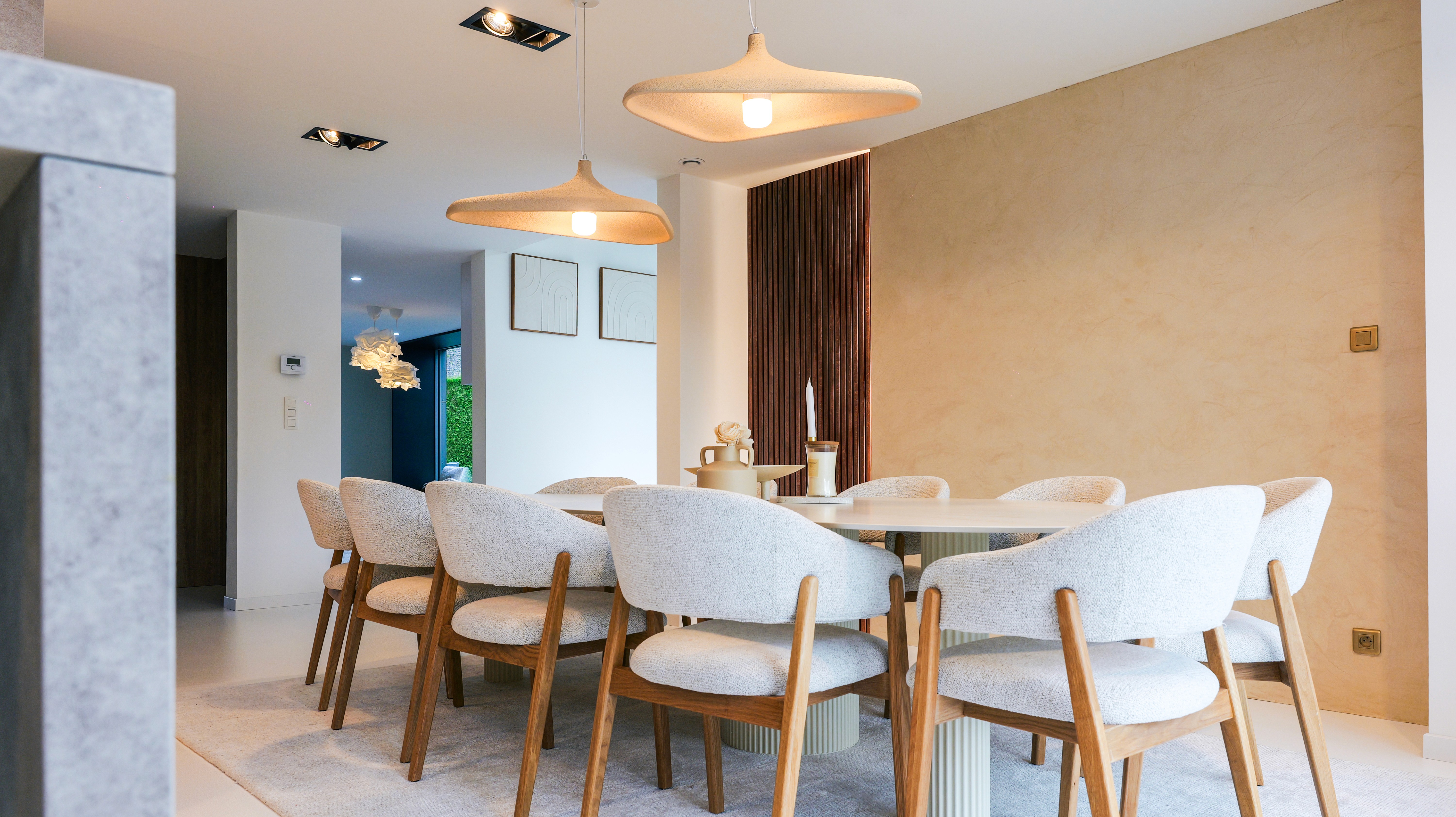 Ce projet résidentiel à Momignies a consisté à créer un espace de vie convivial et lumineux. Le cœur de la maison est une cuisine ouverte sur-mesure, alliant des tons boisés chaleureux à des lignes modernes. L'aménagement a été pensé pour optimiser les rangements tout en conservant une fluidité de circulation idéale pour la vie de famille.